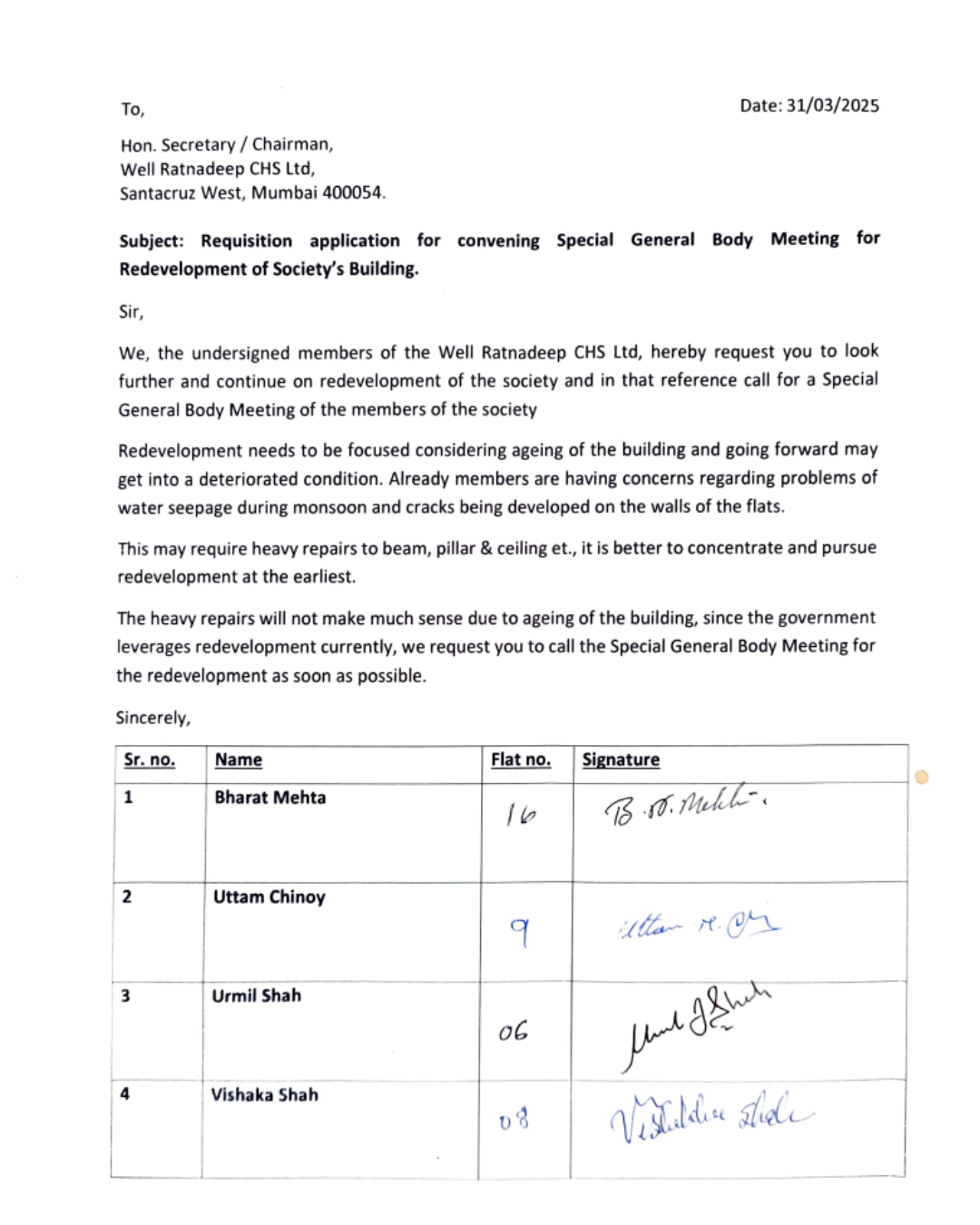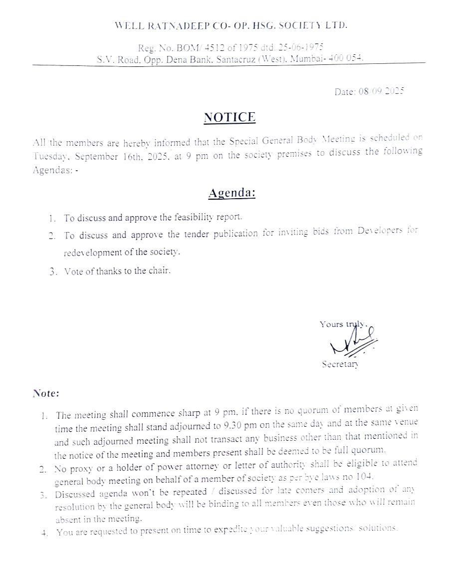 Established in 1975, Well Ratnadeep Co-Operative Housing Society Ltd is a residential community located in the heart of Santacruz (West), Mumbai. With just 22 flats, we offer peaceful and well-connected living, surrounded by major transport hubs including railway, buses, and the upcoming metro.